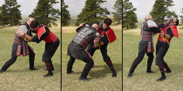 Yoroi Kumi Uchi (grappling in armor) and sword restrainment weapons was the focus of training at the 2003 camp. Students were also able to experience Torinoko (flash bombs) first hand.