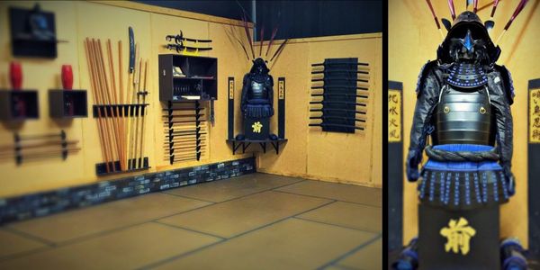 Mr. Grove designs and creates a classically styled dojo equipped with a vast array of weaponry, armor, makiwara boards, tamaeshi giri stands, shuriken targets, balance beams, running walls, and both hard and matted floors for martial arts practice.
